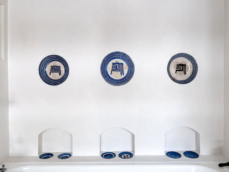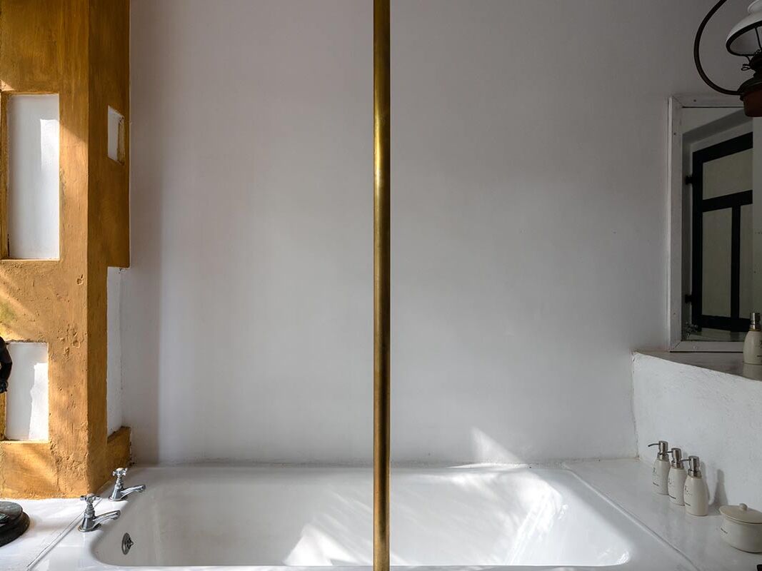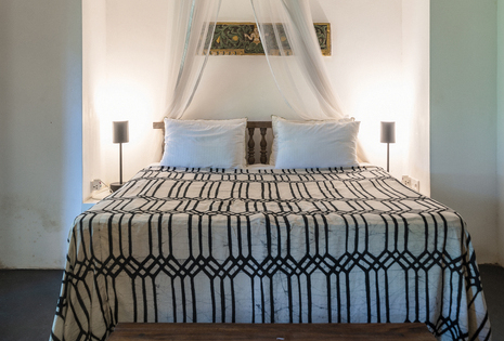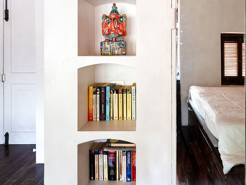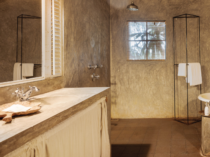 これは、ルヌガンガの端に位置する55年の歴史を持つ伝統的なヘリテージヴィラの1つです。ゲストスイートは1階にあり、キングサイズのベッド、風化したテラコッタの床、バスタブ付きのギャラリースタイルのバスルームが特徴で、そこからはプライベートな中庭に繋がっています。中庭にはシンプルな本棚とアームチェアが置かれています。