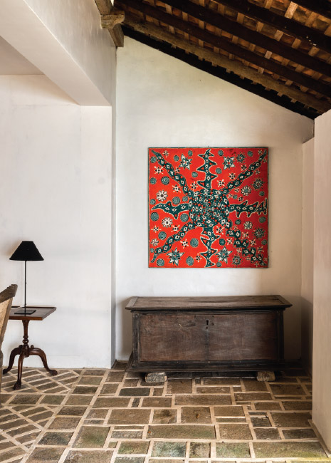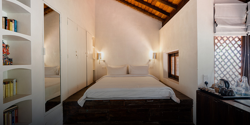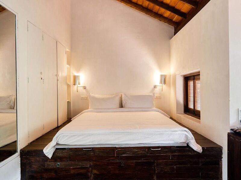 元々こちらのお部屋は、建築助手たちが週末にルヌガンガに集まり、プロジェクトに取り組むために設計されました。建物の2階に位置し、ツインベッドやオランダ時代のアンティーク、その他様々な芸術的なアイテムで彩られています。寝室とバスルームのアルコーブ窓は広く開き、緑豊かな景色を楽しむことができます。専用のバスルームには、レインシャワーとバスタブが完備されています。家の屋外ベランダには、ジェフリー・バワと同じ時代に生きた、著名なスリランカのアーティストであるラキ・セナナヤケによる目を引く壁画が飾られています。