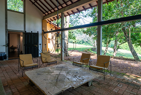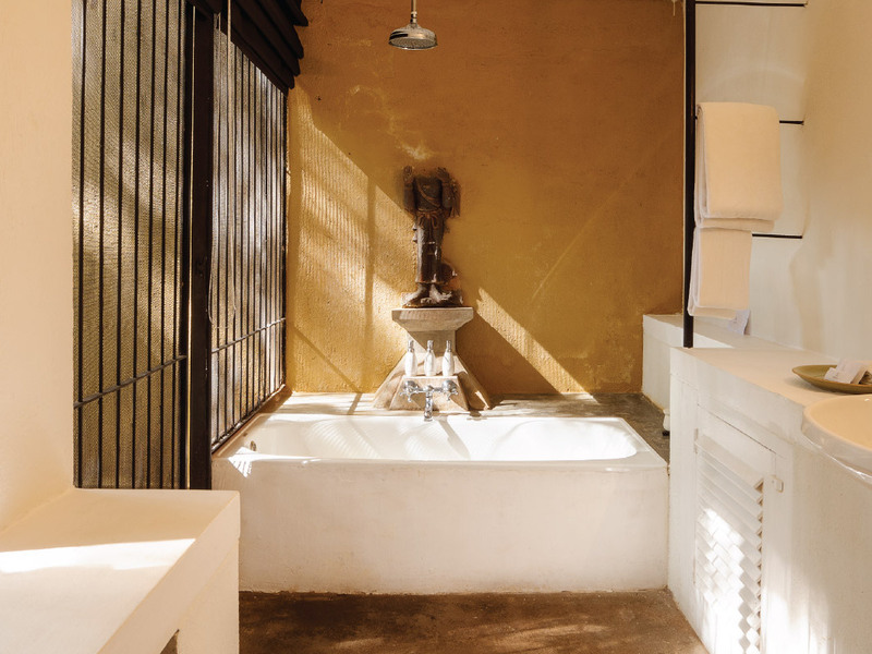 バワの親友たちが滞在してきたお部屋です。Main House Studioは、清潔なリネンで整えられたキングサイズのベッドがあり、快適な滞在をサポートするための設備が整っています。バスルームには、ヤシの木が見える窓があり、大きな陶器のバスタブの向かいにシャワーが設置されています。この部屋の特徴は、完全プライベートの中庭があり、静かなひとときを過ごすことができるという点。バワの人生に思いをはせながら、ごゆっくりおくつろぎくださいませ。