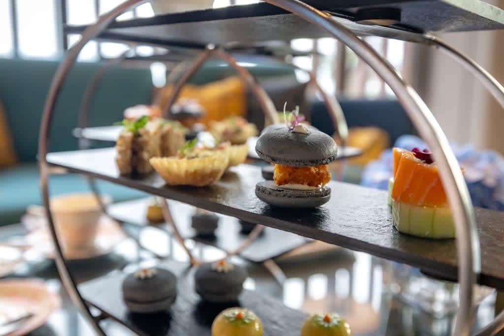 ホテルのメインロビー横に併設されたロビーラウンジでは、落ち着いた雰囲気と高い天井、大窓から入る自然光とその先にあるハロン湾の眺望を楽しみながらオーダーメイドのカクテルやコーヒー、ティーをお楽しみいただけます。極めつけはアフタヌーンティー。おしゃれなトレーに乗ったカナッペやマカロンなど、アフタヌーンティーがお手頃なのもベトナムの魅力!