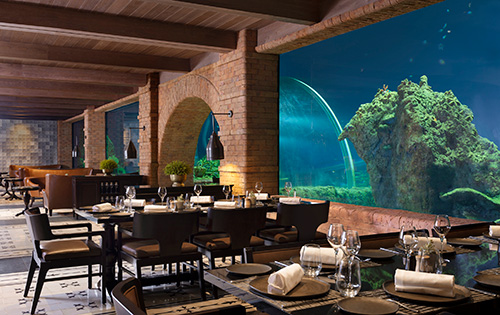 まるで水族館にいるような気分の中、インドネシアの様々な島の新鮮な食材からインスパイアしたオリジナルメニューをお召し上がり頂けます。