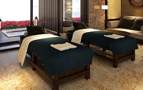 オーシャンビューの豪華なスパトリートメントルームです。 ルルール(インドネシアの伝統的な軟膏)をベースにした、ジャワ風トリートメントで、トリートメントは数種類の中からお客様に最適な特別メニューをお選びいただけます。