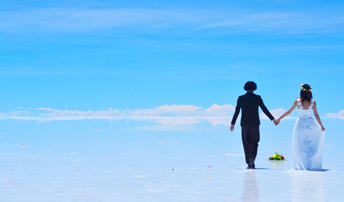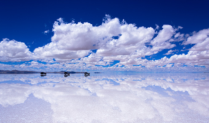 ウユニ塩原にうっすら水が張り、紺碧の空や流れる雲、満点の星空が映し出される“鏡”が出現します。湖面を歩くとどちらが空かわからなくなる錯覚に囚われる異次元の世界。移りゆく風景をいつまでも眺めていたい、世界中の旅人が憧れてやまない場所です。