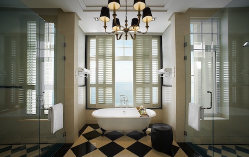 2013年に建てられた新館・ヴィクトリーアネックス内に位置する客室。少し小さめのバルコニーからはジョージタウンの街並や海を臨めます。大理石のマーブルバスルームには猫足の素敵なバスタブとお二人用の洗面台(ダブルシンク)が設置されています。シーフェイシングまたはパーシャルシービュー(指定不可)の客室となります。