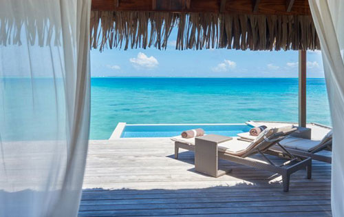 水上ヴィラとの違いは、お部屋からの景色となります。ラグーンと水平線のより開放感のある景色をご覧いただけます。